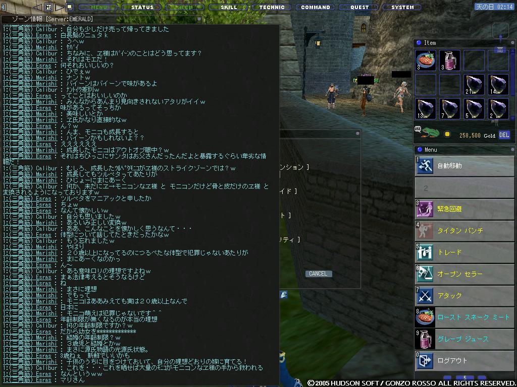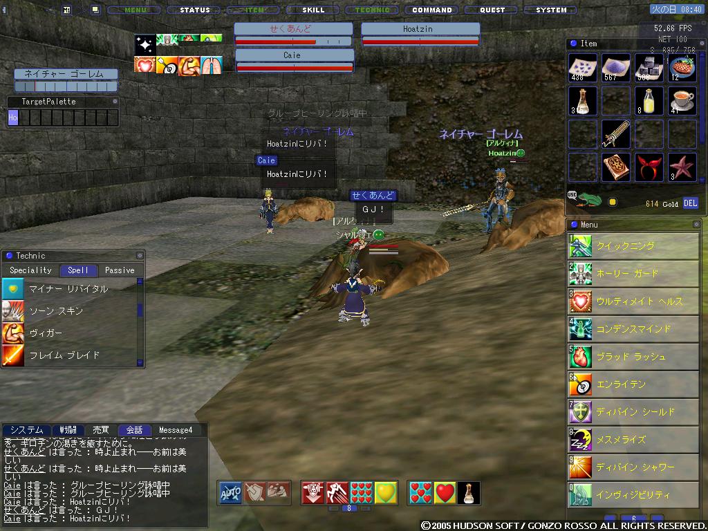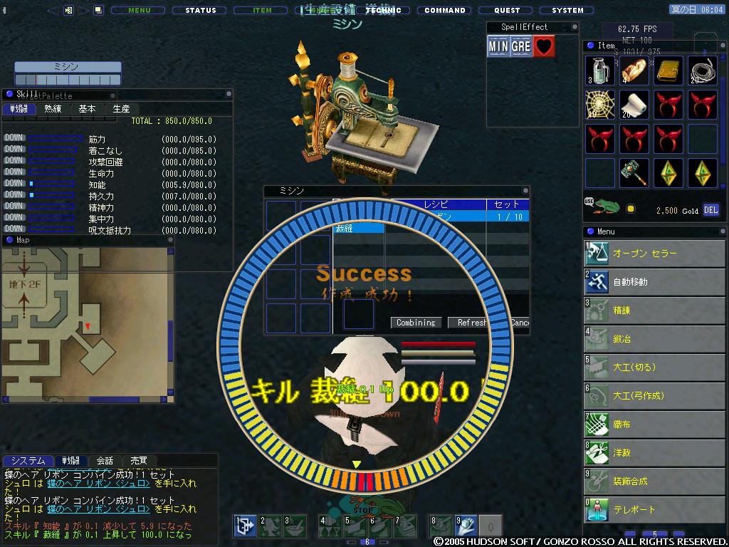 もっとも最近はレポートがあって露店キャラでchにINすることが多いですがw この前地下水路のミスリル堀場に行ってきました。とりあえずどんなところなのかを箇条書きで ・ミスリル(金の岩石とのランダムPOP)のPOP間隔が大体リアル10分くらい ・チェイサーのPOP間隔が大体リアル10分くらい ・定点が可能 ・ゴーレムストーンがDrop ・鉱石の質はギガス最奥?(近くに湖があるところ)に似ている 個人的な感想 チェイサーが結構強く、割りに合いません。自分は他のところで掘ります 堀場といえば地上墓地にある鉱石の質が気になるお年頃です(* >ω<)=3 とりあえず今度ネズミ友好を取って質を調べて、良質な鉱石であればDK・骨友好も取ろうと思ってます DK・骨友好ですが、PTのうち一人がランクアップクエストをクリアすればPT全員友好を取れるのではないかと妄想し、今度試してみようと思っています。 この妄想が現実になった暁には大豆やグリードルなど物の数ではないわ! おまけ 連絡事項を二つほど すでに知ってる人がいますが、こりぃさんが来月の13日にGKTのOFF会で12日の17:50に羽田着予定です。せっかくですので12日の夕方からからOFF会をやろうということになりました。詳細はまだ決まっておりません。 現在のところ参加者は こりぃさん・Glaさん・自分 の3名が確定しております(予定では) 錬金レシピを制覇しました | カレンダー